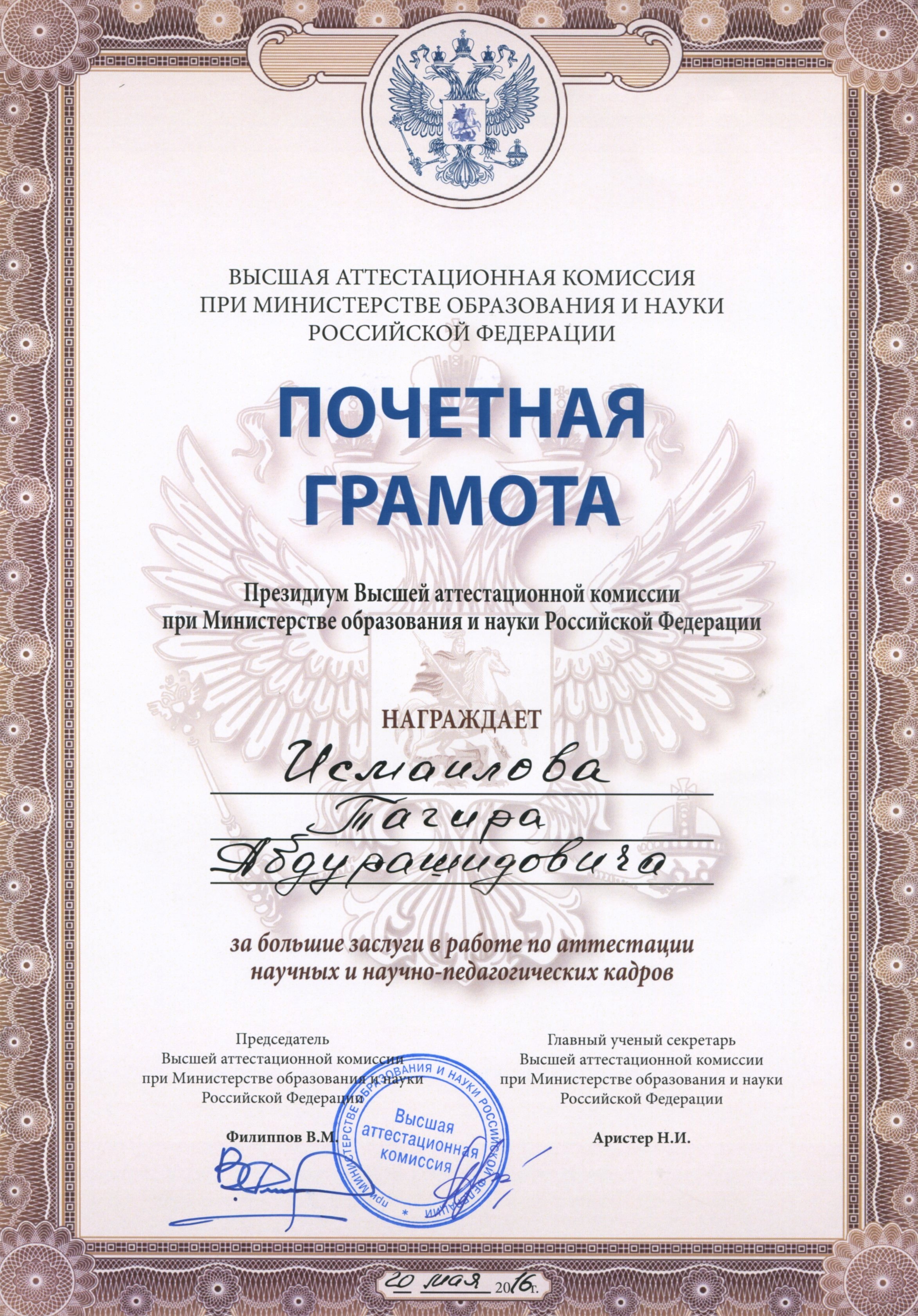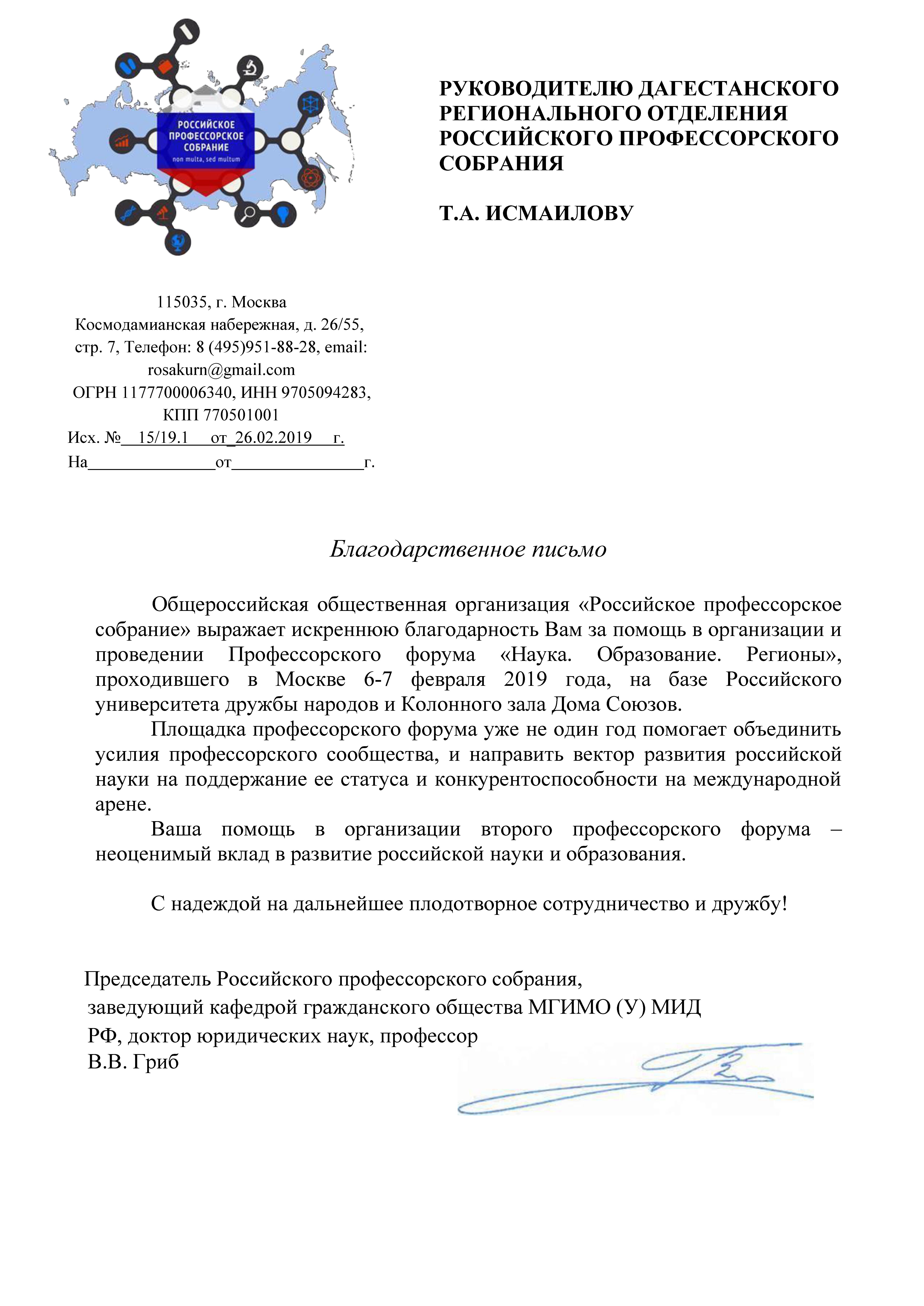 Российское профессорское собрание выразило благодарность Президенту ДГТУ Тагиру Исмаилову