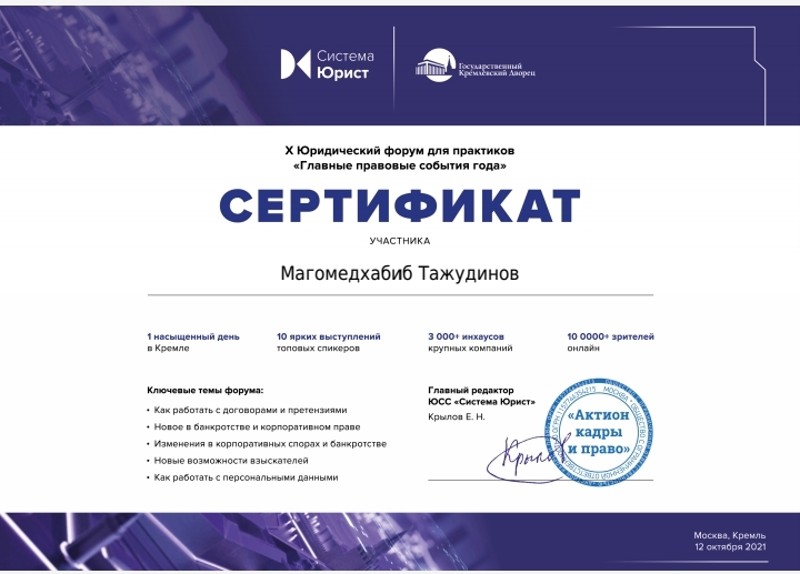Магистрант ДГТУ – участник X Юбилейного Юридического форума для практиков «Главные правовые события года»