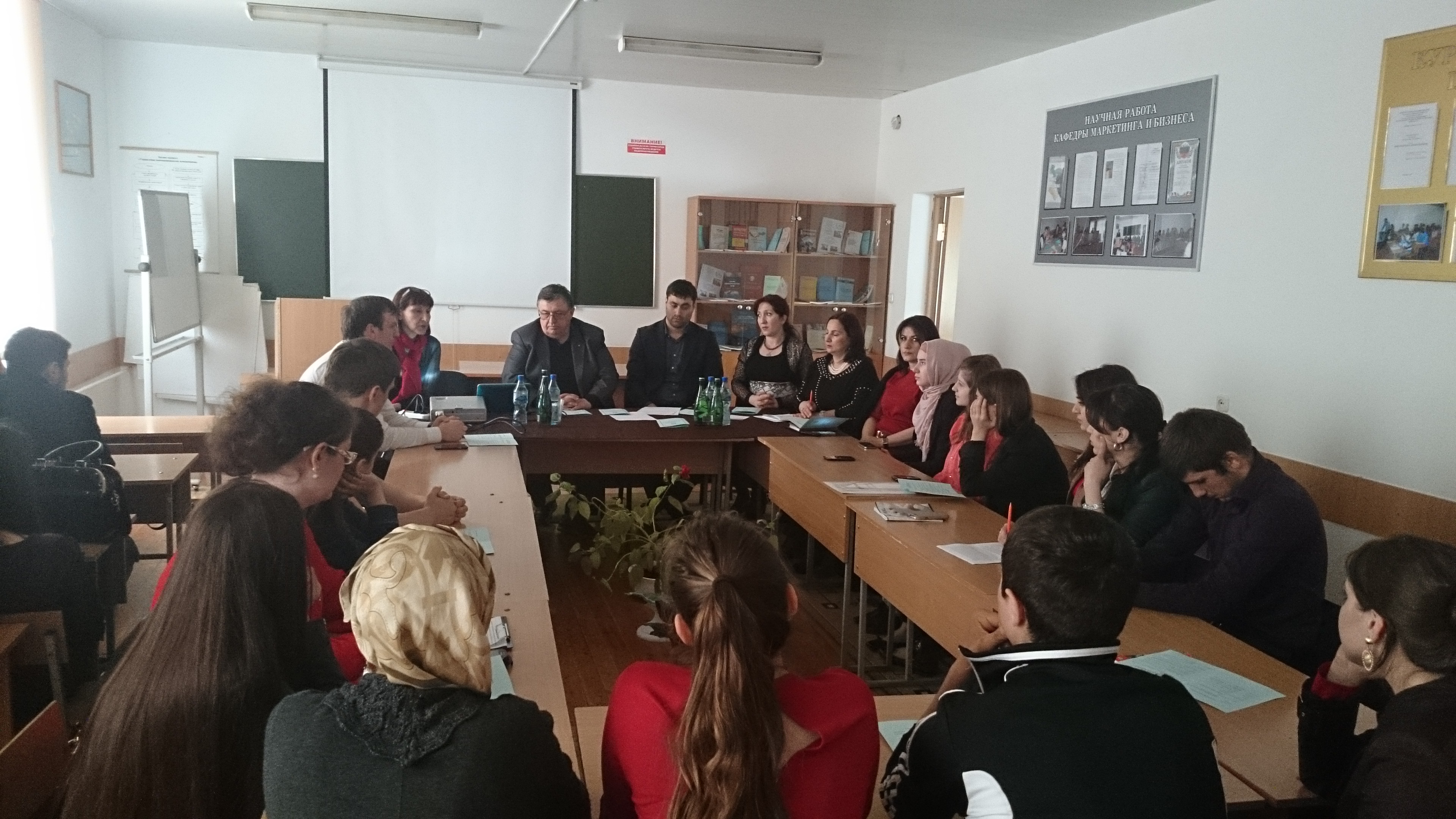 Преподаватели кафедры маркетинга и бизнеса организовали встречу студентов профилей «Маркетинг», «Коммерция» и ГиМУ инженерно-экономического факультета с заместителем Главы администрации Кизилюртовского района Алисултановой М.Т., заместителем генерального директора предприятия «Мараби» Алмаевым А.Г., начальником отдела маркетинга Торгового Дома «Дагестан», председателем профессионального сообщества маркетологов СКФО Алигимовым М.И., директором ГКУ «Молодежный инновационный центр» Галимовым С.Р. и предпринимателями.