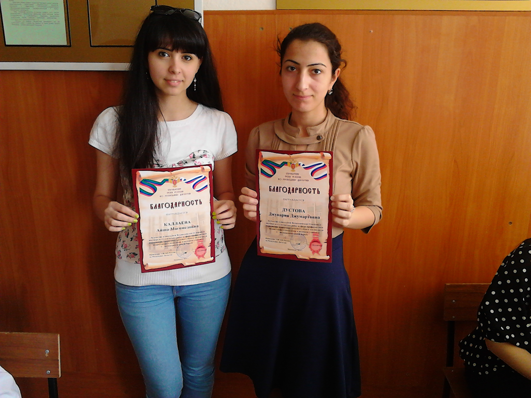 За участие в ежегодной Всероссийской Олимпиаде научных и студенческих работ в сфере профилактики наркомании, пропаганду здорового образа жизни среди подрастающего поколения и активное участие в антинаркотической борьбе студентам ДГТУ вручены Благодарности от ФСКН России по РД.