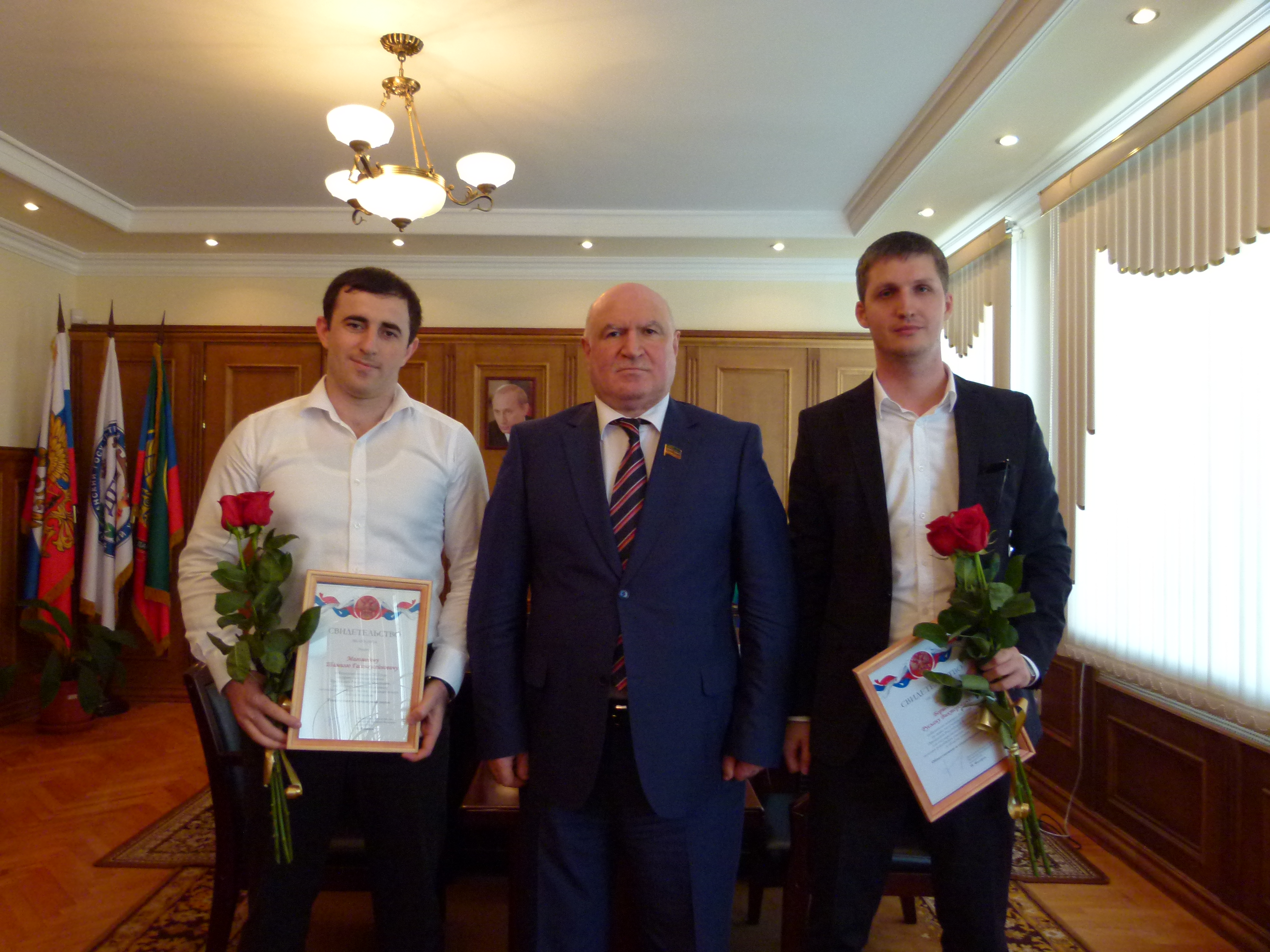 Председатель Совета ректоров вузов Республики Дагестан, ректор ДГТУ Т.А.Исмаилов вручил Свидетельства победителям конкурса 2013 года на право получения грантов Президента Российской Федерации для государственной поддержки молодых российских ученых – кандидатов наук.